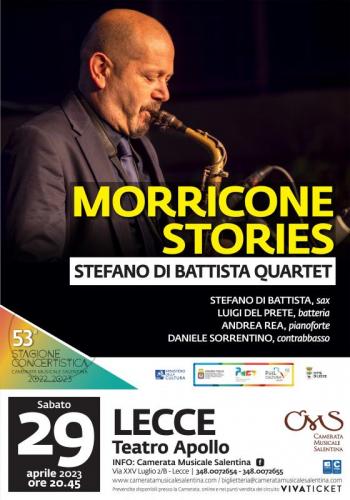 Sabato 29 aprile ultimo appuntamento serale della 53^ Stagione Concertistica della Camerata Musicale Salentina, che ospita al Teatro Apollo di Lecce “Morricone Stories”, uno speciale omaggio del sassofonista Stefano Di Battista al compositore e Premio Oscar Ennio Morricone, al quale era legato da una sincera amicizia e da diverse collaborazioni.