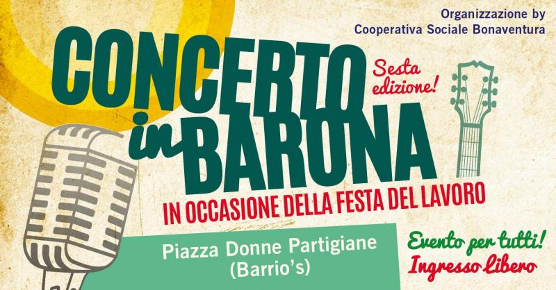 “Concerto in Barona” è una grande festa che vuole omaggiare e sancire la grande importanza e il valore sociale del Primo Maggio e ci saranno anche giochi per i più piccoli oltre alle consuete aree di ristoro con street food e la proposta di birre artigianali di grande qualità, il tutto con una finalità culturale e di forte aggregazione sociale con, anche, lo scopo di riqualificare la piazza ed il quartiere.