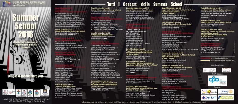 Compie il primo lustro la Summer School che l’istituto Superiore di Studi Musicali “Peri-Merulo” diplomi di Alta Formazione Artistica Musicale, cioè lauree, propone quindi anche numerose masterclass fra le proprie attività formative.
