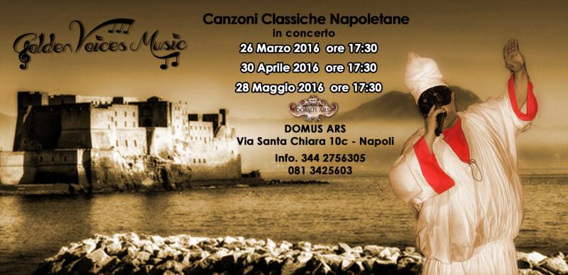 La Golden Voices Music propone ed organizza concerti di Musica Classica Napoletana nelle piu’ belle e suggestive location del centro storico di Napoli (chiese, palazzi storici, teatri, ect), offrendo ai propri spettatori un suggestivo e raffinato incontro tra la melodia ricercata del bel canto e l’atmosfera magica di luoghi e paesaggi incantati, di sorprendente ed ineguagliabile bellezza naturale, artistica ed architettonica.