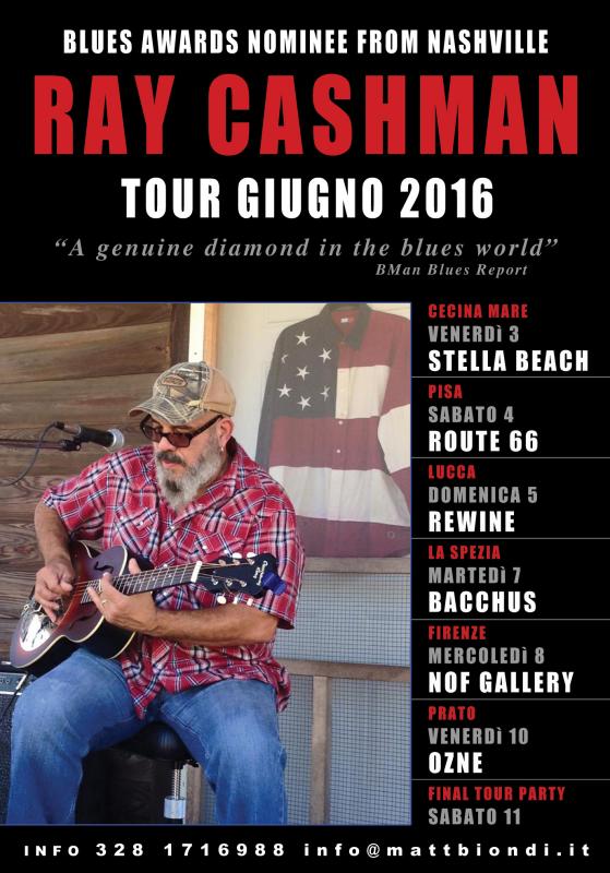 Ray Cashman sarà in Tour in Toscana dal 03 all'11 Giugno e sarà accompagnato dalla band del nostro Michele 'Matt' Biondi, tra i musicisti più quotati della scena blues Toscana: