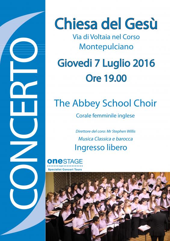 È il coro della scuola inglese “Abbey School” il protagonista dei concerti ad ingresso gratuito di giovedì 07 luglio alle ore 19.00 presso la Chiesa del Gesù a Montepulciano, e di venerdì 08 luglio alle ore 18.00, presso l’ Università per stranieri di Perugia.