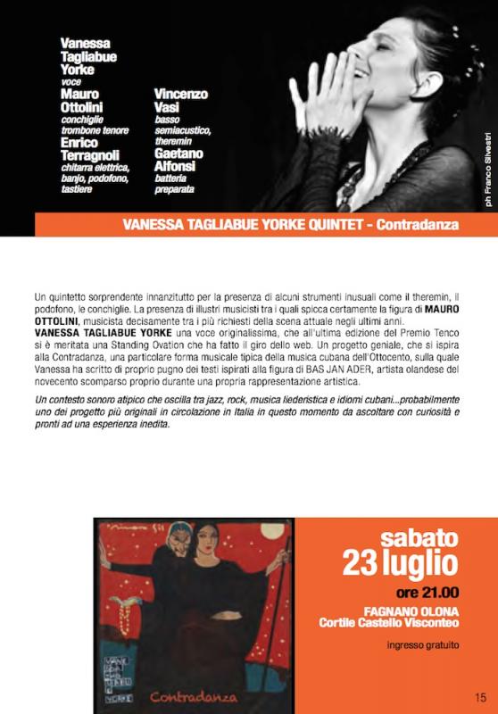 Il cortile del Castello Visconteo di Fagnano Olona ospiterà la performance di “Vanessa Tagliabue Yorke Quintet“, sabato 23 Luglio 2016 alle ore 21, che rientra nel tour del JAZZaltro.