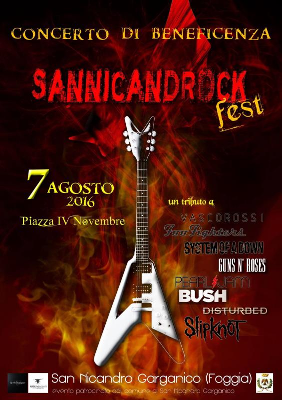 Domenica 7 agosto alle ore 21.30 San Nicandro Garganico ospita in piazza IV Novembre la prima edizione del "Sannicandrock Fest", un evento di beneficenza creato allo scopo di aiutare animali bisognosi.