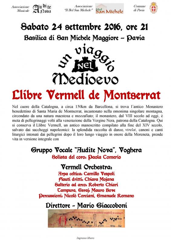 Il programma propone infatti l’esecuzione integrale della collezione di canti e danze ad uso dei pellegrini contenuti nel “Llibre Vermell” (ossia libro rosso, dal colore della pelle con cui fu rilegato) conservato nella Biblioteca del Monastero benedettino di Montserrat, in Catalogna.