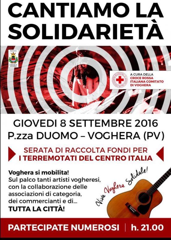 Giovedì 8 Settembre, dalle ore 21, in Piazza Duomo a Voghera, da un’idea di Marina Azzaretti, in collaborazione con Croce Rossa Italiana, Comitato di Voghera, e con la direzione artistica di Lele Baiardi, va in scena una serata di raccolta fondi per i terremotati del Centro Italia. Voghera si mobilita con tanti artisti, la collaborazione delle associazioni di categoria, dei commercianti e di…tutta la città!