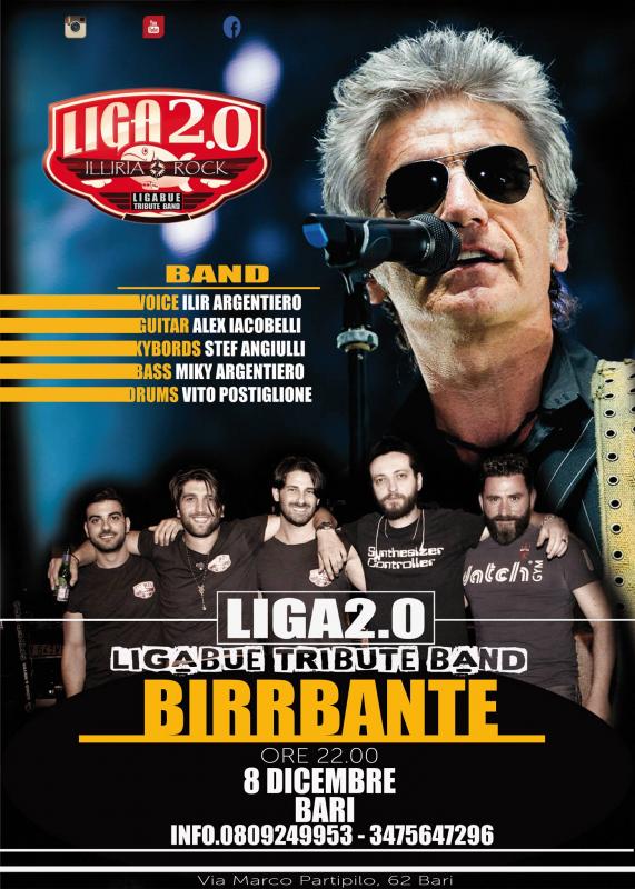 Una delle poche band in circolazione attualmente a proporre IL LIGA in modo inconfondibile riproducendo tutte le sue sonorità elettriche e acustiche in modo professionale e con uno studio molto accurato dello show.Il progetto LIGA2.0 nasce con l'intento di offrire uno spettacolo unico e originale che vale assolutamente la pena vivere per capirne l'essenza e la magia.in occasione di questo evento avremo la speciale collaborazione di uno dei migliori percussionisti pugliesi, il quale fondera le sue doti con i LIGA2.0 dando vita ad una magia da ricordare...
