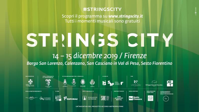Strings City è un’iniziativa del Comune di Firenze, promossa da Tommaso Sacchi, assessore alla Cultura, moda e design e, inoltre, fa parte del progetto Accordi Metropolitani per cui la Scuola di Musica di Fiesole ha ricevuto il contributo dalla Città Metropolitana di Firenze. Strings City è un’iniziativa a cura della Scuola di Musica di Fiesole con Conservatorio di Musica Luigi Cherubini, Maggio Musicale Fiorentino e Orchestra della Toscana, con la partecipazione di Amici della Musica Firenze e Orchestra da Camera Fiorentina e con Musicamorfosi e Tempo Reale, il sostegno di Fondazione CR Firenze e SIAE – Società Italiana degli Autori ed Editori, la media partnership di Rai Radio Classica, la collaborazione di New York Film Academy che curerà la documentazione video del festival e la partnership tecnica di The Student Hotel Firenze. La documentazione fotografica di Strings City sarà realizzata anche con la partecipazione degli studenti della LABA di Firenze. Il coordinamento organizzativo e della comunicazione di Strings City è curato da H+.