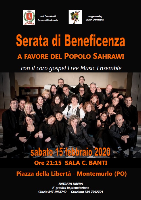 Spettacolo di beneficenza che si terrà sabato alle 21.15 in sala C.Banti a Montemurlo PO, a sostegno della causa Sahrawi.