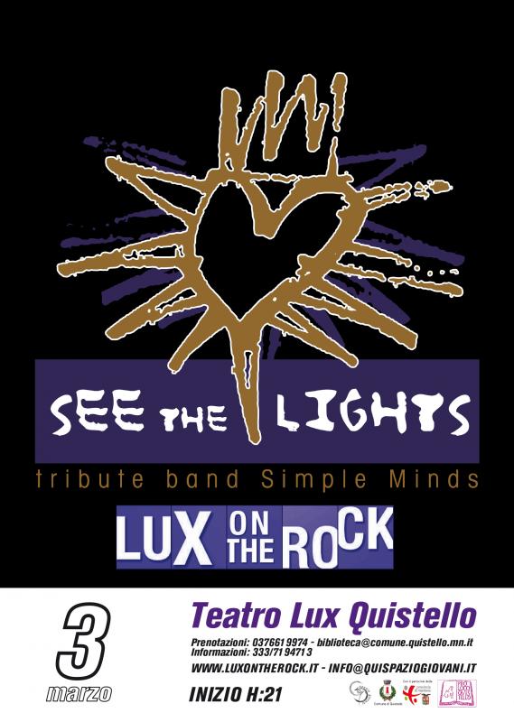 Venerdì 3 Marzo alle ore 21:00 presso la sala del Cinema Teatro LUX di Quistello (MN) la rassegna LUX ON THE ROCK vi propone il Tributo ai Simple Minds, sul palco saliranno per esibirsi in una grande serata all' insegna della New Wave, il gruppo SEE THE LIGTHS.