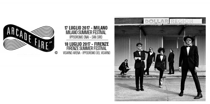 Milano, 13 febbraio 2017. Gli Arcade Fire tornano in Italia per due date imperdibili a tre anni dall’ultimo trionfale tour del precedente album “The Reflektor”. La band capitanata da Win Butler e Régine Chassagne sarà in concerto lunedì 17 luglio al Milano Summer Festival (Ippodromo SNAI - San Siro) e martedì 18 luglio al Firenze Summer Festival alla Visarno Arena (Ippodromo del Visarno – Firenze).
