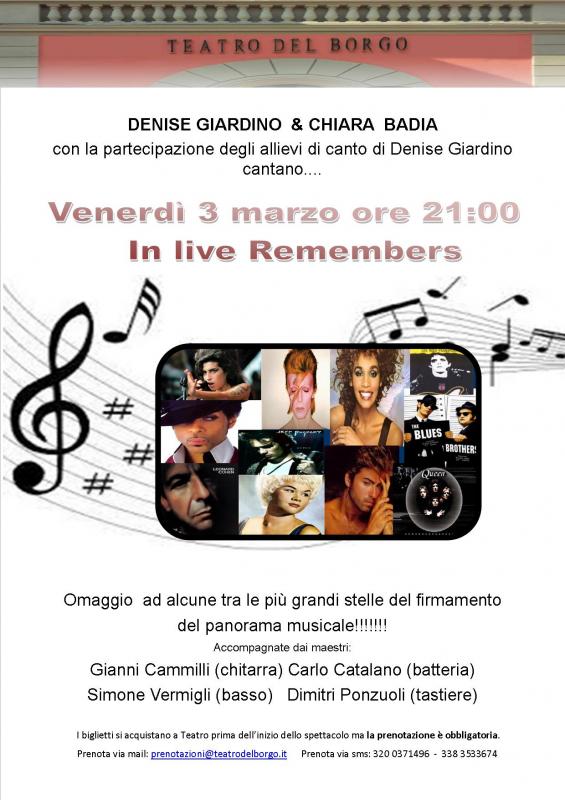 Il Teatro del Borgo è lieto di invitarvi ad un evento musicale emozionante e coinvolgente, per ricordare alcune delle più celebri star della musica internazionale di tutti i tempi: “In live Remembers”.