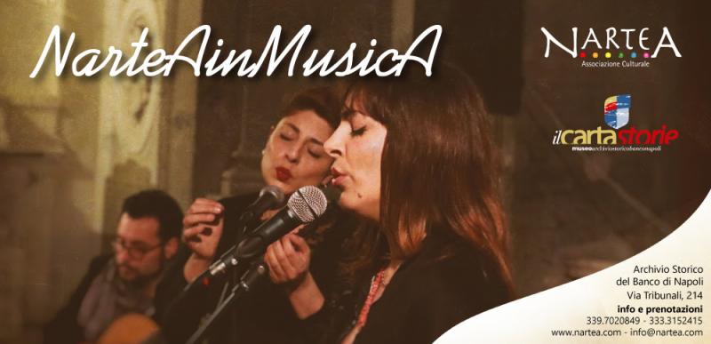 La storia di una città passa anche attraverso i suoni e le musiche che si rincorrono tra le sue strade e che abitano i suoi vicoli e palazzi: non si può dire di conoscere a pieno un luogo, se non si è in grado di fischiettarne canzoni e motivi da essa ispirati... ritorna NarteAinMusica, terzo appuntamento con il nuovo format di NarteA, che coniuga la visita ai luoghi d'arte con la musica napoletana.