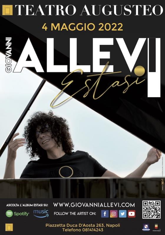 Al Teatro Augusteo di Napoli, Piazzetta Duca D’Aosta 263, mercoledì 4 maggio alle ore 21:00, il compositore di fama mondiale, il Maestro Giovanni Allevi, torna al suo amato pianoforte con suggestive melodie e ritmiche intense. La tappa napoletana del suo tour europeo, con le composizioni dell’ultimo progetto discografico “Estasi”, sarà l’occasione per un emozionante viaggio dell’anima attraverso le note del pianoforte, per toccare dal vivo il più sublime degli stati di coscienza della condizione umana.