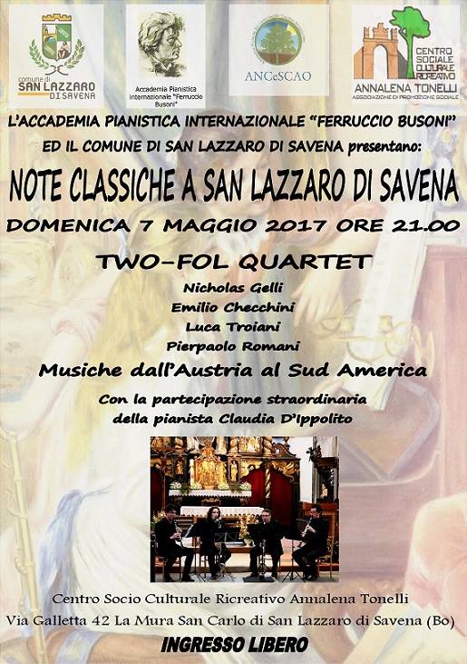 Il quartetto di clarinetti TWO - FOL Quartet nasce dalla commistione di esperienze diverse che hanno i quattro strumentisti (Musica orchestrale, bandistica, jazz, Popolare). Lo scopo del gruppo è quello di portare a conoscenza del pubblico la musica vocale e strumentale partendo dal barocco e passando attraverso i secoli arrivando fino ai giorni nostri e alla musica contemporanea. Il quartetto, composto da Emilio Checchini, Nicholas Gelli, Pierpaolo Romani e Luca Troiani, vuole sperimentare tutte le qualità timbriche non solo del clarinetto tradizionale ma anche le degli altri membri della famiglia, infattiil quartetto è composto da quattro tipi diversi di clarinetto (clarinetto piccolo, clarinetto, corno di bassetto, clarinetto basso). Il gruppo può essere allargato fino a 12 elementi. Il repertorio proposto è vario, si va dalle Ouverture da opere alla musica per film, dalla trascrizione di sinfonie e brani classici strumentali fino alla musica jazz e al musical.