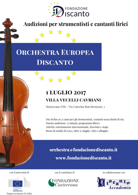 info e iscrizioni http://fondazionediscanto.it/orchestra-europea-sedi-audizioni/