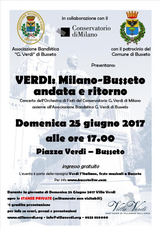 Concerto dell’Orchestra di Fiati del Conservatorio G. Verdi di Milano assieme all’Associazione Bandistica G. Verdi di Busseto. L’evento è patrocinato dal Comune di Busseto ed è parte della rassegna Verdi l’Italiano, feste musicali a Busseto (per info www.bussetolive.com).
