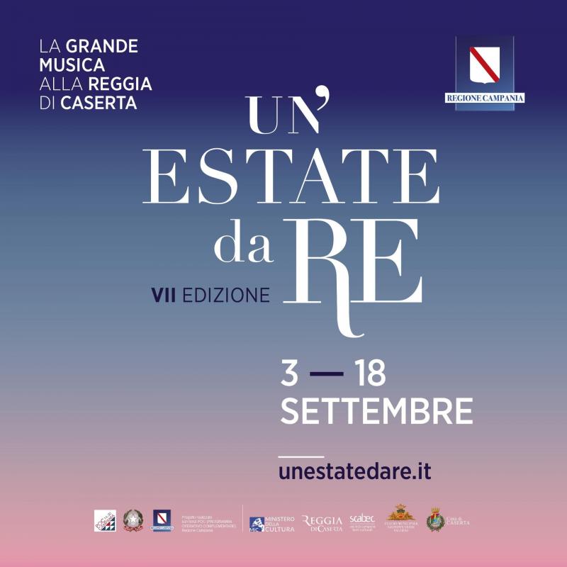 Torna alla Reggia di Caserta dal 3 al 18 settembre “Un’Estate da RE”, la rassegna musicale programmata e finanziata dalla Regione Campania (fondi POC 2014-2020), organizzata e promossa dalla Scabec – società regionale di valorizzazione dei beni culturali – in collaborazione con il Ministero della Cultura, la Direzione della Reggia di Caserta, il Comune di Caserta e il Teatro Municipale “Giuseppe Verdi” di Salerno; la direzione artistica è affidata al Maestro Antonio Marzullo.