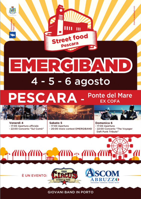 Sabato 5 agosto- 17:00 Apertura al pubblico- 20:00 inizio contest Emergiband Pescara 2017