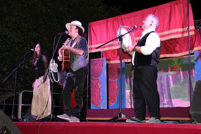 E poi ancora ballate, stornelli e leggende con cui il Cantastorie ripostese, accompagnato dai musicisti Marco Crisafulli, alla fisarmonica, Rosario Moschitta, alla chitarra e al mandolino, Ninni Simonelli, alla batteria, e Rosario Tomarchio, al contrabbasso, e dai cantattori Ornella Brunetto e Gianfilippo Tomaselli,ha coinvolto e divertito il folto pubblico presente. Un grande successo testimoniato dai numerosi e scroscianti applausi che hanno accompagnato a più riprese lo spettacolo. Particolarmente scenografica la rivisitazione de “La Baronessa di Carini”, in cui Luigi Di Pino ha dato grande prova anche delle proprie abilità da ventriloquo. Nel corso della serata sono state consegnate, infine, due targhe ricordo, la prima al puparo Salvo Mangano, consegnato dall'assessore Carmelo Villari, e la seconda dallo stesso Luigi Di Pino a Salvatore Belardo, appassionato di tradizioni e proprietario dei carretti siciliani esposti in Piazza Municipio. Allo spettacolo, allestito in collaborazione con l'operatore culturale giardinese Saro Bellingheri, hanno preso parte anche gli attori Eugenio Patanè, Angela Giammuso, Elvira Piacenti e Simona Panarello. Infine, assistente alla regia Mariacarmen Russo e riprese video di Alessio Armiento.