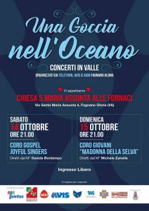 Concerto meditazione “Una goccia nell’oceano” all’interno del ciclo di concerti in valle promossi e organizzati da Telethon e dalle associazioni Avis e Aido di Fagnano.