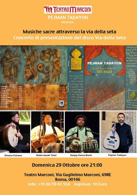 Domenica 29 Ottobre alle ore 21 presso il Teatro Marconi, Pejman Tadayon, musicista e compositore persiano, presenta il suo ultimo disco dedicato alla “Via della seta e le città antiche”.
