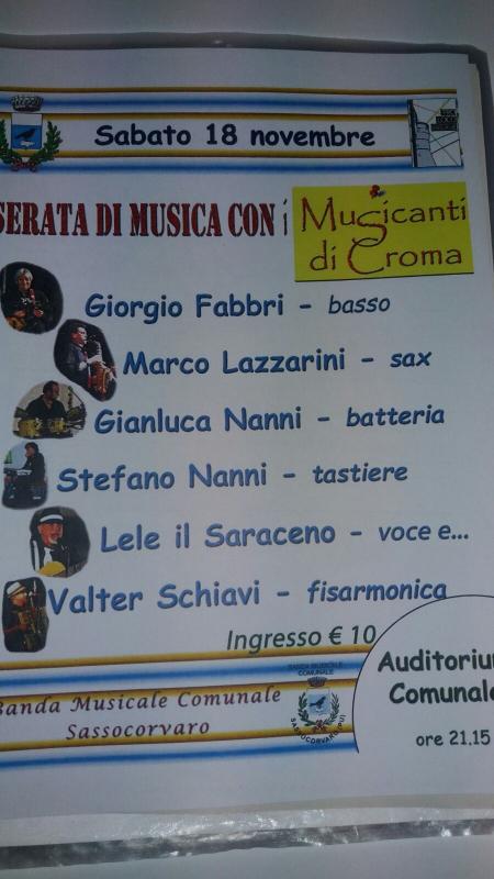 La serata sara' dedicata per raccogliere fondi per la Banda Musicale di Sassocorvaro.