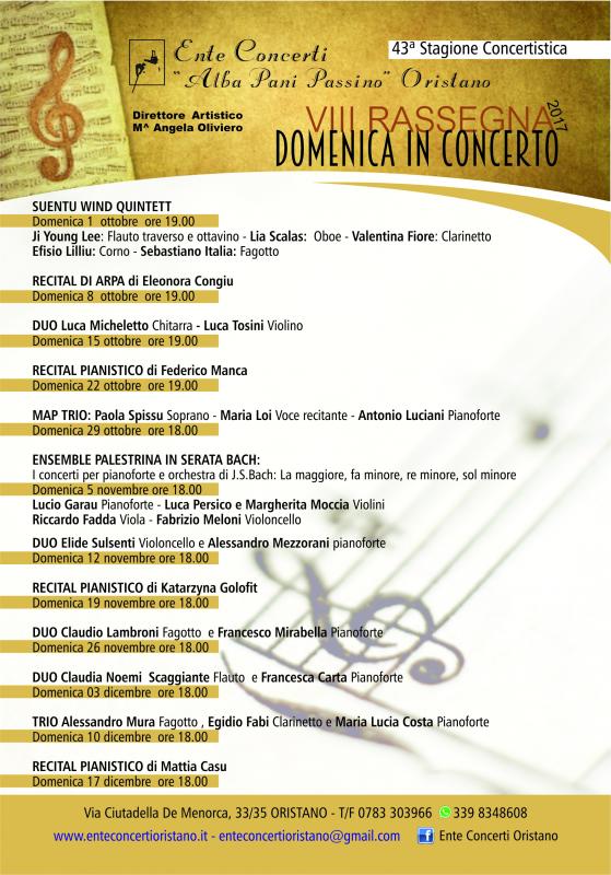 La Rassegna, inserita nell'ambito della 43^ Stagione Concertistica, è organizzata dall’Ente Concerti “Alba Pani Passino con il patrocinio della Regione Autonoma della Sardegna, della Fondazione di Sardegna, del Ministero per i Beni e le Attività culturali e Turismo e la collaborazione del Museo Diocesano Arborense.