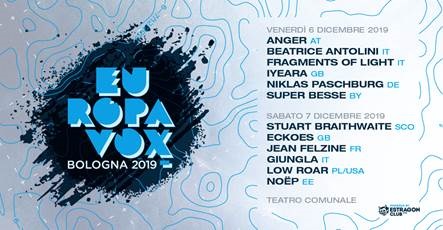 6 e 7 dicembre 2019: torna Europavox Bologna, ultima tappa annuale del Festival internazionale “senza confini”, dedicato alla diversità musicale europea. Con centinaia di concerti fra Clermont-Ferrand (sede principale del Festival) e il resto d’Europa (Vienna, Atene, Zagabria, Vilnius, Bruxelles), migliaia di frequentatori, una rete che cresce ogni anno, Europavox vuole dare visibilità e promuovere gli artisti del continente, attraversando tutti i tipi di musica.
