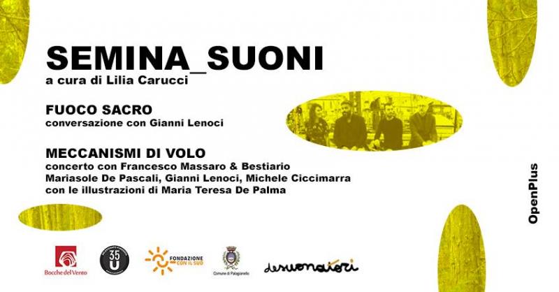 Con “Semina_Suoni” a cura di Lilia Carucci, presso il coworking "OpenStories" del Castello arrivano Francesco Massaro, jazzista pugliese, sax baritono e clarinetto basso, al quarto posto per la categoria “Nuovo talento italiano” nella top Jazz 2017 e i “Bestiario”: Gianni Lenoci al pianoforte, preparato e non; Mariasole De Pascali al piccolo, flauto e flauto alto; Michele Ciccimarra alla batteria, percussioni e cupa cupa.