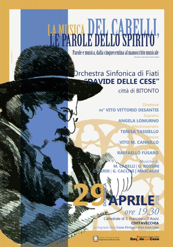 “La musica del Carelli, le parole dello Spirito” Un team di artisti a Roma e Civitavecchia per far conoscere melodie salvate dall’oblio. Bitonto, 09/04/2018 Una due-giorni fra musica e poesia, ideata per valorizzare un patrimonio musicale dal valore inestimabile. Questi gli ingredienti dell’evento “La musica del Carelli, le parole dello Spirito”, che vedrà l’Orchestra Sinfonica di Fiati “Davide Delle Cese” di Bitonto (BA), diretta dal m° Vito Vittorio Desantis, esibirsi il prossimo 28 aprile a Roma, nella chiesa di Sant’Alfonso all’Esquilino, e il 29 aprile nella vicina Civitavecchia, all’interno della cattedrale dedicata a san Francesco d’Assisi. Due serate in cui la maestria della formazione bitontina, impreziosita dalle voci del soprano Angela Lomurno, del mezzosoprano Teresa Tassiello e del tenore Vito Cannillo, darà vita a uno spettacolo unico, in cui le melodie del compositore bitontino Michele Carelli (1838 - 1911), uno dei più insigni “cantori del dolore” pugliesi, si intrecceranno alle poesie del “poverello d’Assisi” e di Dante Alighieri, in un percorso dalla profonda spiritualità; il tutto in collaborazione con il regista Raffaello Fusaro, bitontino d’origine e romano d’adozione. I concerti rientrano nel progetto “Parole e musica. Dalla cinquecentina al manoscritto musicale”, presentato dall’associazione culturale musicale “Davide Delle Cese” per il bando “Giovani per la valorizzazione dei beni pubblici” (lanciato a novembre 2012) e risultato fra i vincitori dello stesso. L’intero progetto, finanziato dal Dipartimento della Gioventù e del Servizio Civile Nazionale della Presidenza del Consiglio dei Ministri, prevede numerose attività legate alla salvaguardia e alla valorizzazione del fondo librario e dei manoscritti musicali conservati nella biblioteca comunale “Eustachio Rogadeo” di Bitonto: fra queste, corsi specialistici di videoscrittura musicale, che hanno permesso di recuperare e trascrivere in notazione moderna composizioni musicali di grande pregio custodite all’interno della stessa biblioteca. «Con il progetto “Parole e musica” - ha dichiarato il m° Desantis, referente per l’associazione “Delle Cese” - possiamo coniugare un patrimonio molto antico con le tecnologie moderne e formare figure professionali da inserire nel mondo del lavoro musicale; grazie anche alle competenze dei nostri partner (la Cooperativa “Fe.Art” di Terlizzi e la Cooperativa “Ulixes” di Bitonto), potremo rendere finalmente accessibile l’immenso patrimonio che ci hanno lasciato i nostri avi e che, troppo spesso, giace sconosciuto nelle nostre biblioteche e negli archivi. Approdare nella Capitale - conclude - con una formazione bitontina, la nostra musica e la collaborazione del regista Raffaello Fusaro, è per noi motivo di grande orgoglio e corona uno di filoni principali che caratterizza l’attività dell’associazione: la filologia musicale, il recupero e la valorizzazione dei nostri compositori in nome di un meridione che vive di storia e di futuro».