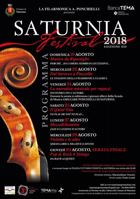 Organizzata dalla Filarmonica Ponchielli di Saturnia e dal Comune di Manciano, la rassegna concertistica è oramai divenuta un appuntamento tradizionale dell'estate Maremmana molto atteso da residenti e turisti.
