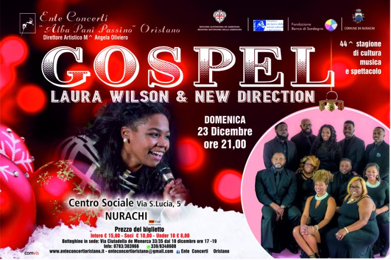 Domenica 23 dicembre presso il Centro Sociale Polivalente di Nurachi alle ore 21.00 si terrà l’annuale e immancabile appuntamento con il Gospel. Quest’anno sarà ospite dell’ Ente Concerti “Alba Pani Passino” il gruppo LAURA WILSON & Nu' Movement. Per la prima volta in Italia, questa formazione è un insieme di musica religiosa tra spirituals tradizionali neri e suoni moderni opportunamente rivisitati e resi popolari dalla tradizione classica per una messa in opera perfetta, tra precisione e bellezza delle voci, profondità delle canzoni sacre, il tutto collegato al lato più modern e contemporaneo della band.