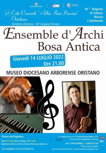 Si esibirà l’Ensemble d’archi BOSA ANTICA con Ivan Rabaglia e Bianca Rabaglia (violini solisti).