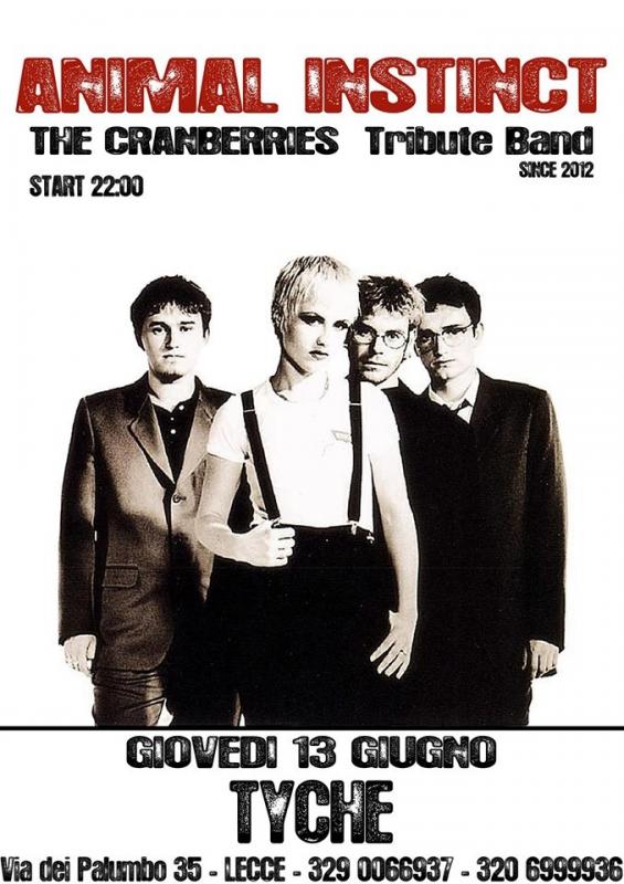 Giovedì 13 Giugno 2019 Animal Instinct The Cranberries Tribute band Live al Tyche, Pub-Pizzeria-Braceria di Lecce,locale che a poco tempo dalla sua apertura è diventato un punto di riferimento per il divertimento e la musica live in Salento!