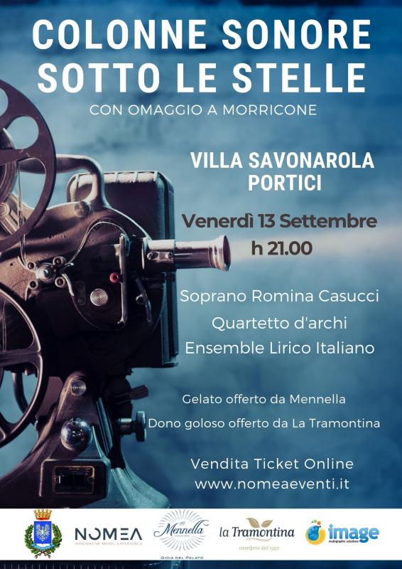 I giardini della Villa storica dalle ore 21.00 di Venerdì 13 settembre si trasformeranno in uno scenario emozionante grazie alle colonne sonore del cinema più toccanti del grande schermo.