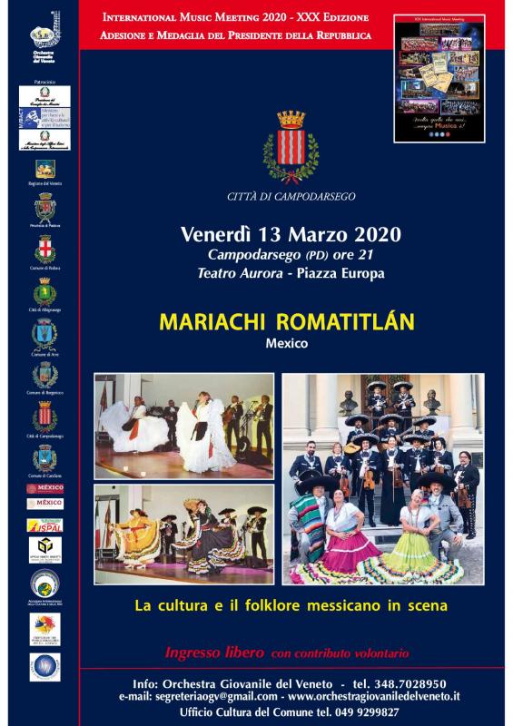 Il Messico è un paese di forti tradizioni e di cultura millenaria, dove l’espressione artistica ha avuto una continuità dalle culture precolombiane ai nostri giorni e dove la musica e le danze tradizionali rappresentano un mosaico molto ricco e vario. Il gruppo “Mariachi Romatitlán” svolge un’intensa attività non solo come interprete dello stile Mariachi, ma anche nella ricerca di brani tradizionali e attuali di questo genere popolare messicano, così conosciuto e diffuso a livello mondiale.