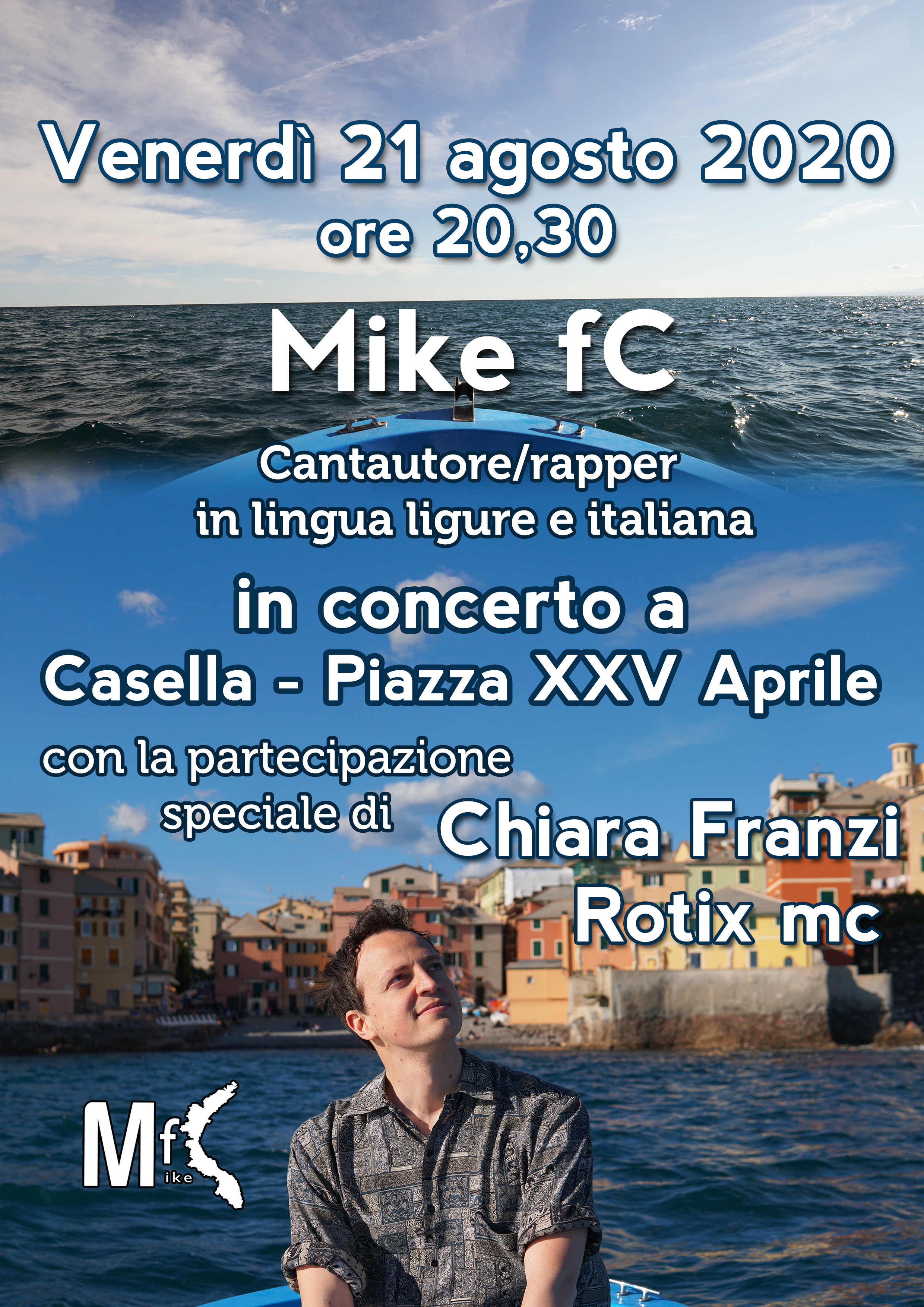 In piazza XXV aprile, dalle ore 20:30, serata musicale con "Mike fC" e la partecipazione speciale di Chiara Franzi e Rotix mc.