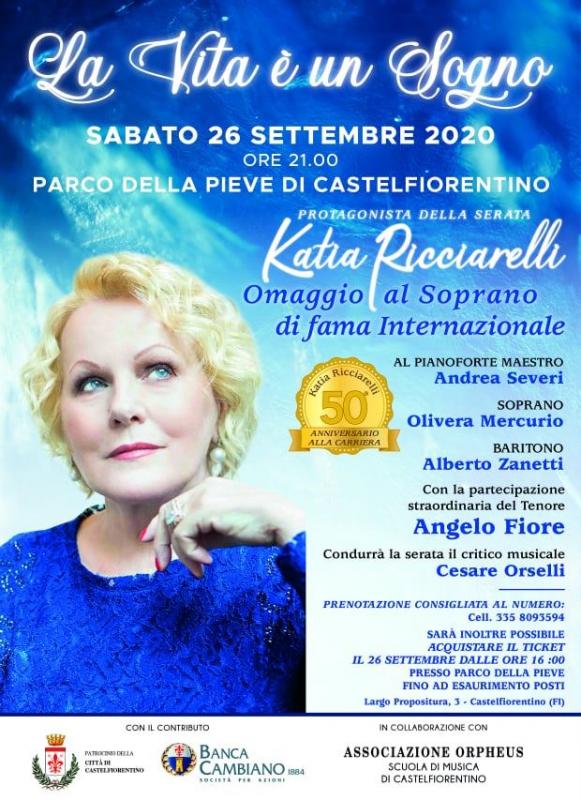 Il Parco della Pieve di Castelfiorentino ospita il concerto che vede come protagonista della serata la Soprano di fama internazionale Katia Ricciarelli, che celebra il 50° Anniversario alla Carriera.