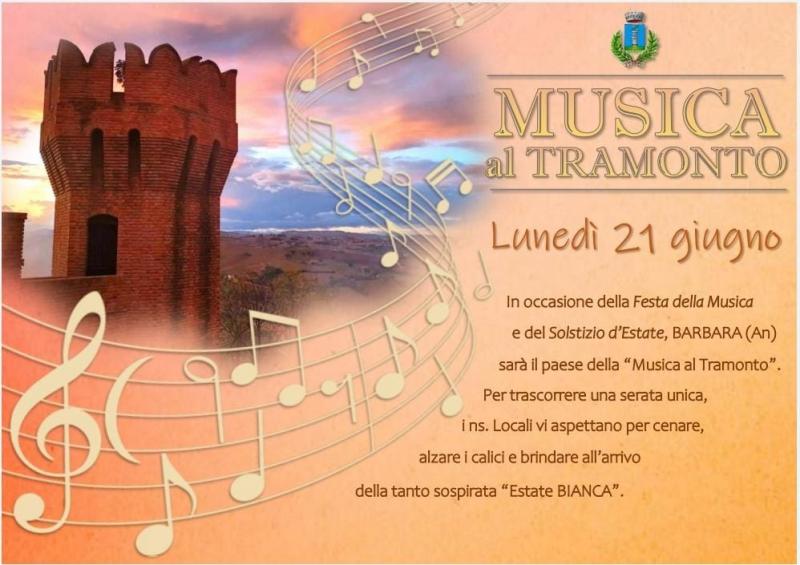 BARBARA. In occasione della “Festa della Musica” e del “Solstizio d’Estate”, Barbara (AN) sarà il paese della Musica al Tramonto.