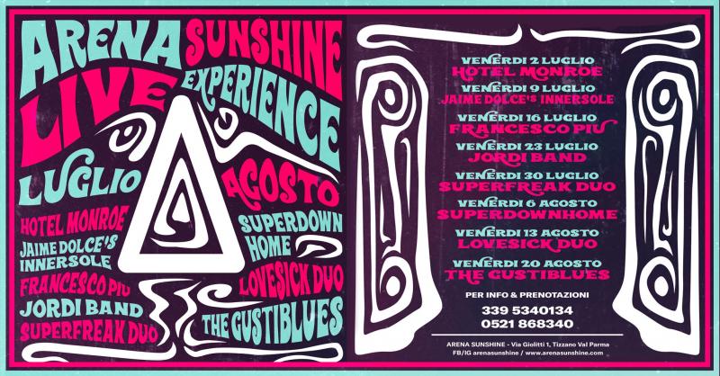 L’occasione ideale per un’estate alternativa, infatti da venerdì 2 luglio 2021 nasce Arena Sunshine Live Experience: 8 concerti arricchiti da tanti servizi per un’immersione totale nel divertimento, nell’ascolto di buona musica e nel benessere generale.