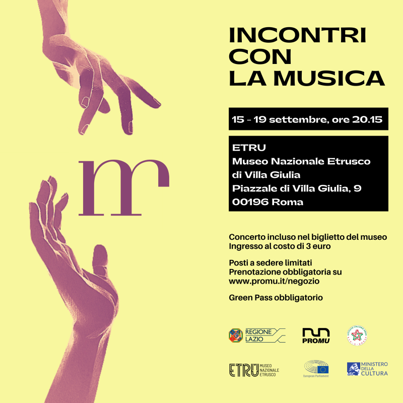 La rassegna è stata organizzata da Promu – All For Music in collaborazione con l’Istituto Italiano Obor e il Museo Nazionale Etrusco di Villa Giulia, con il contributo della Regione Lazio e con il patrocinio del Parlamento Europeo, del Ministero della Cultura e dell’Associazione Beni Italiani Patrimonio Mondiale.