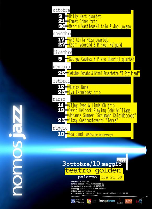 31 concerti per un tour esclusivo del jazz internazionale in Sicilia tra Palermo (Teatro Golden), Catania (Teatro ABC), e Caltanissetta (Teatro Margherita): questa la stagione 2021/22 del Circuito Jazzistico Siciliano, progetto nato nel 2006 e promosso dall’Associazione Catania Jazz, realtà che conta il maggior numero di abbonati in Europa in epoca pre-Covid – 1000 a stagione, seconda solo a Umbria Jazz in quanto a biglietti annualmente venduti (dai 20 ai 25000 di media) - e che vede la direzione artistica di Pompeo Benincasa.
