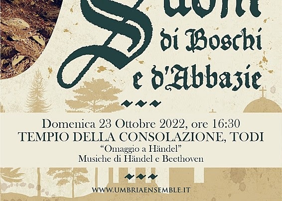Suoni di Boschi e d'Abbazie 2022 è una rassegna di spettacoli musicali ideata e realizzata da UmbriaEnsemble e con il sostegno del Ministero della Cultura e di numerose istituzioni locali