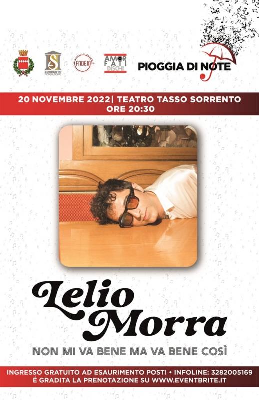 Fade In per l’appuntamento “Pioggia di Note II edizione” presenta per la prima volta in penisola Sorrentina Lelio Morra in concerto con il live “Non mi va bene ma va bene così ”