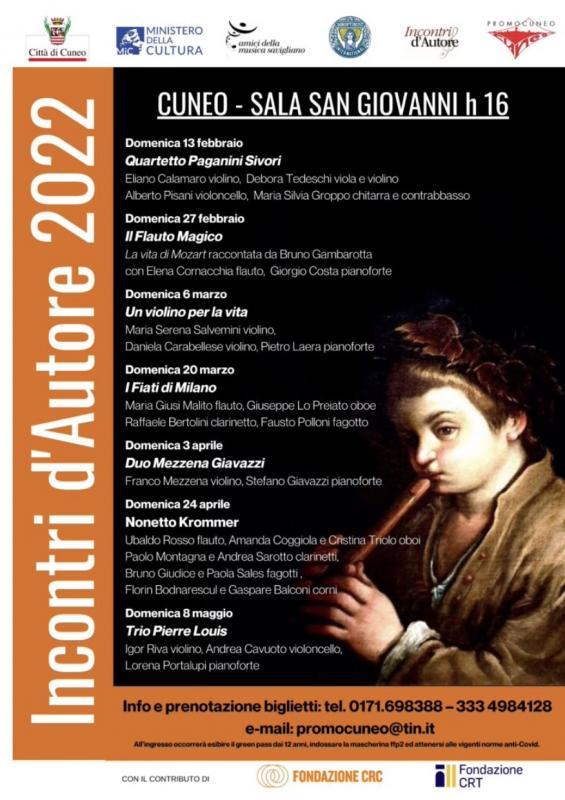 Otto appuntamenti, dal 13 febbraio al 22 maggio 2022, per “Incontri d'autore”, organizzato dagli Amici della Musica di Savigliano.