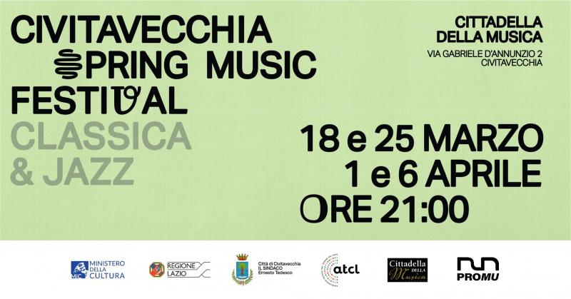 Promu in collaborazione con ATCL - Circuito Multidisciplinare del Lazio e il Comune di Civitavecchia presenta il "Civitavecchia Spring Music Festival", una rassegna di quattro grandi concerti di musica classica e jazz che si terranno dal 18 marzo al 6 aprile nella sala Ennio Morricone presso la Cittadella della Musica di Civitavecchia.