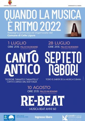 Tre appuntamenti musicali all’insegna del ballo e del divertimento, proposti e sostenuti dal Comune di Celle Ligure per la nuova rassegna “Quando la musica è..ritmo”, manifestazione che si avvale della collaborazione artistica dell’”Associazione Culturale Corelli” di Savona