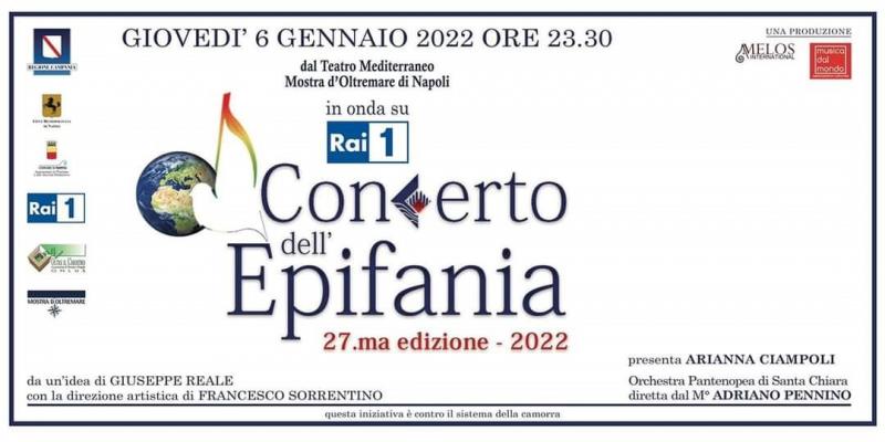 La 27.ma edizione del Concerto dell’Epifania, che ritorna al Teatro Mediterraneo di Napoli con la presenza dal pubblico, sarà trasmessa su RAI 1, giovedì 6 gennaio 2022, alle ore 23:35 e sarà condotta da un volto noto della televisione come Arianna Ciampoli. Saranno EDUCAZIONE, LAVORO e DIALOGO TRA LE GENERAZIONI i temi scelti per il tradizionale appuntamento culturale e musicale, a cui dal 1996 ad oggi hanno partecipato oltre 300 interpreti di generi musicali diversi, provenienti da varie parti del mondo. In un momento storico così delicato, il gruppo di artisti di questa 27.ma edizione farà partire da Napoli un messaggio di pace e solidarietà che raggiunga tutti i popoli nel nome dell’arte e della cultura, un messaggio che possa infondere fiducia e speranza in tutti noi.