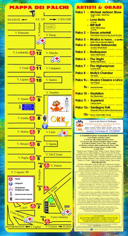 Queste le validissime formazioni locali suddivise nei 12 palchi per la serata asseminese: Riff Raff, Mollys Chamber, Grande Baboomba, Kriminal Quartet, The Vaghi, Kisstation, RadioQueen, The Highwayman, Supereroi, Eshal Oriental Dance & Karalis Sisters, Emanuele Garau, Gianni Atzori (Erbekofono), Tenore AntoniMilia di Orosei, Peter's Day, Assemini Big Band, Arie d'Opera di Valerio Carta.